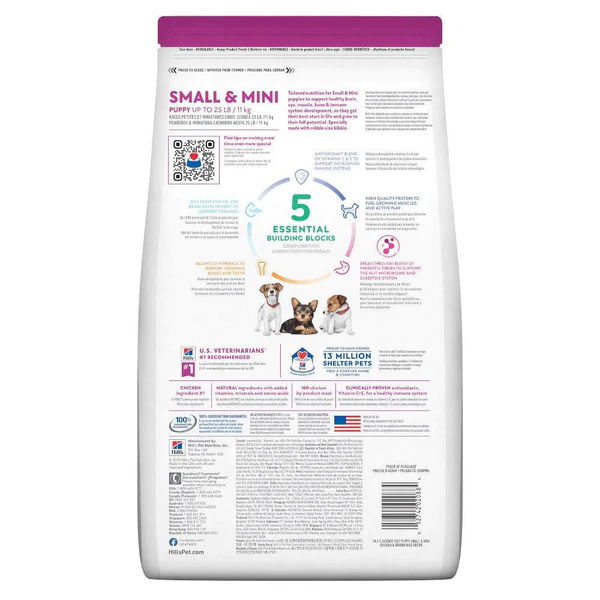 Gracias a la ciencia, Hill's Science Diet ha formulado este alimento con nutrientes vitales que respaldan 5 componentes esenciales para una salud óptima y un bienestar duradero: inmunidad fuerte, desarrollo óseo y muscular, salud digestiva, piel y pelaje saludables, y desarrollo cognitivo y de la visión. Con este alimento, tu cachorro de raza pequeña o miniatura tendrá el mejor comienzo en la vida, permitiéndole crecer a su máximo potencial.